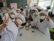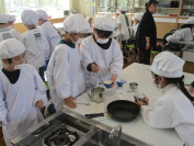 3年生では、栄養教諭の北中先生の「食育」の授業がありました。今回は調理実習で豆乳とにがりを使って豆腐づくりを行いました。分量を間違えないように、先生の指示をしっかり聞きながら実習をしていました。ゆであがると栄養たっぷりのお豆腐ができあがりました。