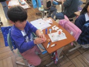 2年生では、図工の時間にねん土を使って動物を作っていました。画用紙にデザインした動物たちをねん土で立体的な形にしていきました。個性あふれる動物ができあがり、それぞれの「アニマルランド」ができあがりました。