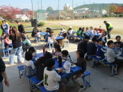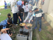 今回の「あそびっくすin東小」は、あそびっくす実行委員会のキッズメンバーが企画した「デイキャンプ」。飯盒炊飯で炊いたお米と校内の菜園で栽培したジャガイモを使い、カレー作りを行いました。好天の中,とてもおいしいカレーをみんなでいただきました。およそ100名ほどの参加者が集まり、先生や保護者、地域の皆さんの交流の場となりました。キッズメンバーが考えたレクリエーションもあり、大人も子どもも一緒になって楽しい時間を過ごしました。
