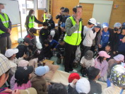 名張市総合防災訓練の日に、地域の皆さんとの合同防災訓練を行いました。最初に各地域の第1次避難場所に避難し、その後、東小、桔梗中のそれぞれの体育館での避難所開設訓練に参加しました。避難場所への避難や避難所開設訓練を初めて行いましたが、開設訓練では高学年の児童も設営のお手伝いを行いました。事前に先生から「自分の命は自分で守る」ことと聞いていたので、子どもたちは訓練の意味を考えて行動していました。