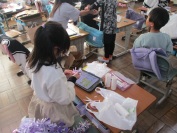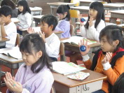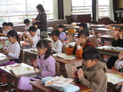 2年生では音楽の時間にカスタネットを使って合奏をしていました。「かぼちゃ」という歌に合わせ、歌いながらカスタネットをたたいていました。楽しそうな歌声とリズムよいカスタネットの音が廊下にまで響いていました。この後、いろんな楽器を使いながら合奏をしていくようです。