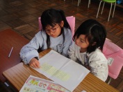 2年生では、おすすめのおもちゃを制作し、みんなに紹介するために、「おすすめのおもちゃ説明書」を書いています。説明書には材料や作り方、おすすポイントなどが、自分たちの言葉で書かれています。それぞれが考え、表現して書いた、すばらしい説明書ができあがっています。