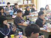 歯科衛生士さんをむかえ、4年生と6年生で「歯みがき指導」を行いました。赤い薬をつけて、自分たちの日ごろの歯のみがき方を確認しました。赤い薬が残ることなく、きれいにみがくことができました。