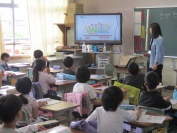 3年生の外国語の時間では、英語での「あいさつ」の仕方を学習していました。音楽にあわせてリズムよく,あいさつをしていました。授業をのぞきに来た校長先生にも大きな声で英語であいさつをしていました。みんな楽しそうです。
