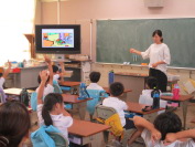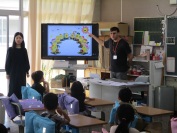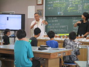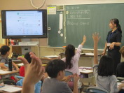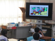 今日は、ALTのギャビン先生が来る日です。1年生では英語での数のきき方や答え方を学習していました。子どもたちは、画像の中に次から次に登場するキャラクター数えて、英語で答えていました。登場するのは、子どもたちもよく知っているゲーム「スーパー〇〇オ」に似たキャラクターで大変盛り上がり、廊下にまで「スリー!」、「セブン!」などの声が聞こえてきました。