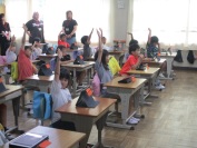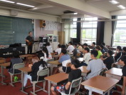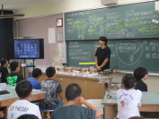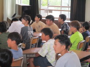 5年生では、グループに分かれて話し合い活動をしていました。二つに分かれ、いかに相手を納得させるか、いくつかの例を出しながら話し合いをしていました。今回は、「山と海のどちらがいいか」という議題でした。相手側を納得させようとそれぞれが、山や海の素晴らしいところを紹介し、白熱していました。司会の人も上手に話をまとめていました。