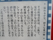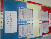 6年生の教室前の廊下の壁には、国語の授業で学習した比喩表現を使って書いた文書が掲示されています。想像をふくらませ、いろいろな「例え」を使って文章を書いています。どんな食べ物について書かれているのでしょうか?考えてみてください。
