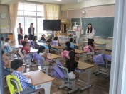 2学期から新しいALTのギャビン先生が来ました。1年生の授業ではギャビン先生の趣味や好きなことを英語で自己紹介してくれていました。発表した児童にはギャビン先生のお気に入りのキャラクターのシールをもらって、みんな大喜び。とても盛り上がっていました。