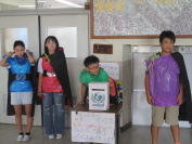 暑い日の「傘さし下校」やあいさつ運動などで活躍してくれている児童会の子どもたちが扮装する「オアシスレンジャー」が今回はユニセフ募金の活動をしてくれています。あいさつもふくめ、朝から元気な声が聞こえてきます。
