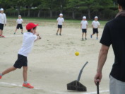 今日はクラブ活動の日です。クラブ活動は4年生〜6年生が一緒に活動しています。運動クラブは、運動場で「ティーボール」を行っていました。「ティーボール」とは止まっているボールを打つ野球のような種目です。紅白に分かれた両チームは乱打戦となっていました。打球が飛ぶたびに歓声が上がり、大変盛り上がっていました。