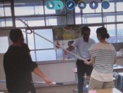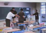名張警察署にご協力いただき、不審者が侵入したという想定で、不審者対応訓練を行いました。侵入してきた不審者を教員が取り押さえている間に、全校児童が教員の誘導のもと、体育館に避難しました。先生も警察の方から、さすまたの使い方などご指導いただき、子どもたちの安全を守るための研修の機会となりました。