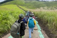 5年生が曽爾高原へ野外活動にでかけました。天候にも恵まれお互いに声を掛け合いながら亀山を登山しました。午後からは自然体験プログラムやキャンドルファイヤーを楽しみました。思い出に残るすばらしい体験となりました。
