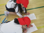 1年生の体育の時間には、なわとびを行っていました。前とびや後ろとび、交差とびなど、いろいろな跳び方にチャレンジしています。跳べた回数を「チャレンジカード」に記入していました。来月には、運動委員会が計画する「なわとびチャレンジカップ」が開催されます。いろんな跳び方にチャレンジし、自己ベストを目指しましょう。