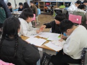 6年生では「命」に関わるいくつかの本を読んで、それぞれが疑問に思ったことを出し合うために座談会を行っていました。他の人の意見を参考にしながら「10年後の私へ。12歳の私が考える命」という冊子を完成させます。完成した冊子は卒業式で、保護者の方に見てもらう予定です。