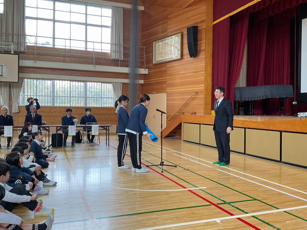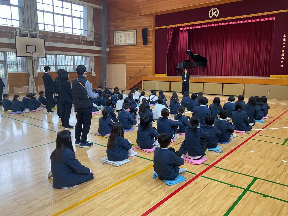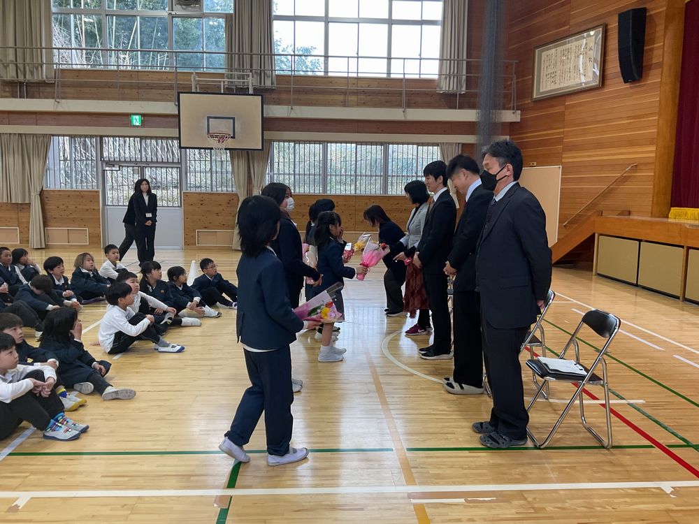 修了式の後、春の定期異動で薦原小学校を去られる先生方とのお別れの式がありました。お別れするのはさみしいですが、新しい学校でもがんばっていただきたいと思います。