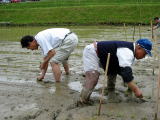 おうちの方もお手伝いにきてくれました。手馴れたもので真っすぐに植えてくれました。