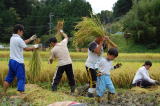 地域の方にご指導いただいて稲刈りを行いました。とれたお米は、給食や12月1日に行う「国津っ子フェスティバル」で食べる予定です。
