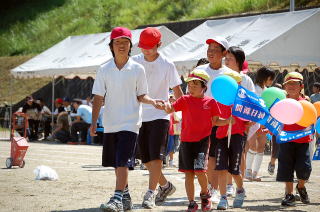 さわやかな秋空の下、2007年度の保育所・小学校合同運動会が開かれました。