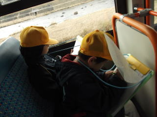 今日は、生活科の授業でバスに乗って、名張駅と平尾山カルチャーパークへ出かけました。
