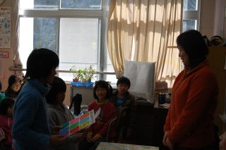1年生と2年生は、夏秋さんに、感謝の気持ちを込めた「ありがとうカード」をプレゼントしました。