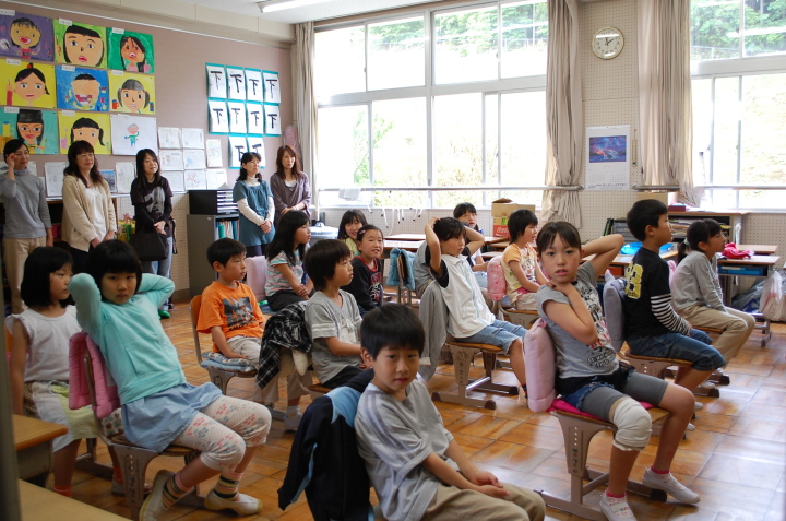 業間から3時間目にかけて、国津保育所の年長さんのお友だちと交流会をしました。