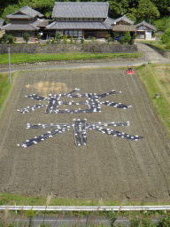 | 稲刈りも終わって1ヶ月がたちました。 今年はPTAのみなさんの発案で、4月に新入生をナバナの花で迎えようということになりました。 そこで、みんなでどんな文字がいいのか考えました。 その結果、「みんな楽しくすごそう」という意味を込めて「楽」という字に決まりました。 地元の橋本さんのご協力にを得て作業を行うことができました。ありがとうございました。 |