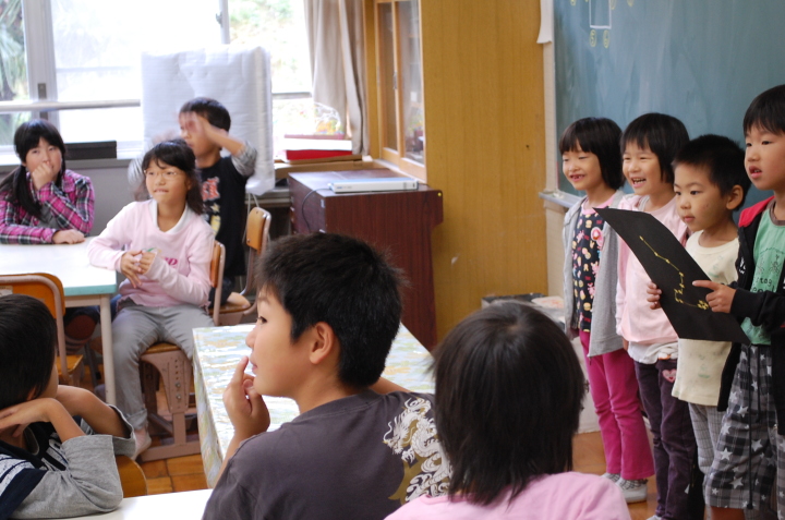 今日は1学期に続き1年生が国津っ子ルームにて発表しました。