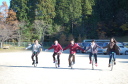 手をつないで一輪車パレードで
