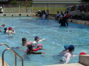 水難事故に巻き込まれたとき、自分の命を守るため「着衣泳」を行いました。着衣を着ての水泳は、通常の水着での授業では体験できない非常時を体験することで、いざというときに落ち着いて行動できることが目的です。子どもたちも「いつもより体が重い」や「すごく泳ぎにくい」などの感想を言っていました。「着衣泳」は全学年で実施します。
