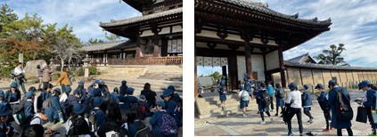 法隆寺や東大寺へ行き、社会科で学習したことを実際に見ることができました。