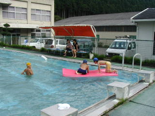自由水泳中は、15家族の育友会会員の皆様、プール 監視員の二人のお兄さん達、児童の安全確保にご協 力いただき、ありがとうございました。 15日(金)の夏祭りは、あいにくの雨でしたが、ご覧のよう に盆踊りや、ストラックアウト、金魚すくいなど、子ども達 が楽しみにしていた催しが開催されました。青年さん達、 区の役員の皆さん、ご準備ご苦労様でした。 16日(土)〜18日(月)の3日間は、体育館で「名張 市バトンアンドマーチング」の方々が合宿中です。 23日には、育友会奉仕作業(AM)、「みんなで語ろ う会」(PM)、並行して間伐林業体験もあり、児童は 朝1時間ほど草引きをしてから、希望者は林業体験に も参加の予定。 24日は、親水公園にて、「鮎祭り」。まだまだ、夏の イベントは続きます! |