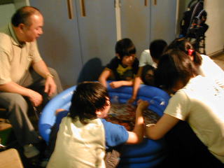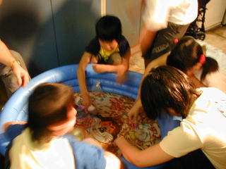 上3枚の写真は、自由水泳最終日(8月11日)の様子。 下8枚は、長瀬の夏祭りの様子。雨の為、体育館にて。 |