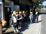 長瀬小学校は、市内で行われる行事には、たいていこのようにバスで参加しています。今年も午後の部なので、長瀬局前午前11時50分発のバスを待っているところ。このころは、リラックス・ムードの全校生23人です。
