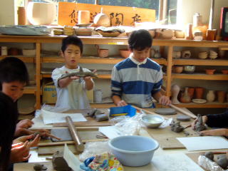 7日には、各自が、図工との合科授業として、いろいろな物を作りました。6年生は、社会の学習の影響もあり、大仏や埴輪を作る子どももいました。5年生は、家で飼っているうさぎなど、動物などを多く作りました。木下さんをはじめ、中島さんや中野さんなど、この陶房を運営している方たちから、アドバイスをもらいながら、楽しく作品作りができました。子どもたちの日記には、「粘土が冷たくて、ぐにゅっとする感覚がおもしろかった。」など、粘土という素材を体で感じながら、学習したことが伺えました。地域の方とのコミュニケーショもでき、貴重な時間になりました。