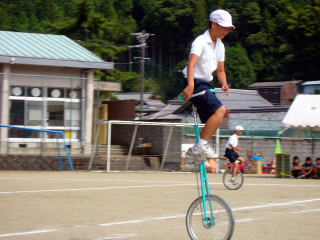 そして、2学期の運動会では、全校生16名全員で、昨年度に続き、組立体操、一輪車演技、