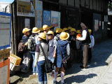 長瀬小学校は、市内で行われる行事には、たいていこのようにバスで参加しています。今年も午後の部なので、長瀬局前午前11時50分発のバスを待っているところ。このころは、リラックス・ムードの全校生23人です。