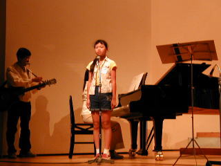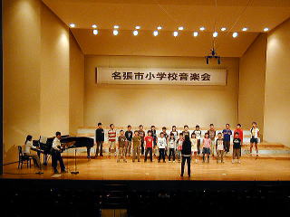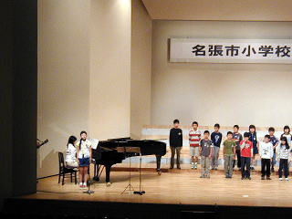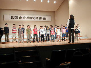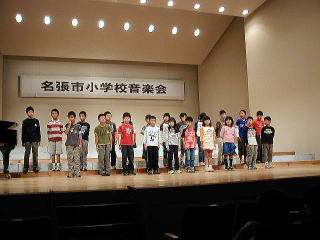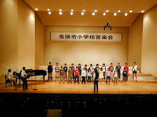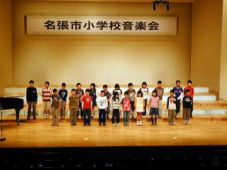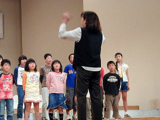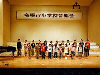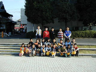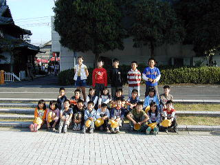 舞台に上がって、さすがに緊張の面持ちの子どもたち(だけじゃないかな?!)の様子と、終了後、青少年センターの外での記念撮影の晴れ晴れとした表情とを比べてみてください。 |