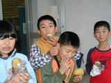 その間、先生達と、ALTのイローナ先生にも手伝ってもらって、焼き上がり、おいしく頂きました。 |