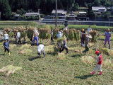 | 稲刈りと「はさがけ」 (全校児童で) |