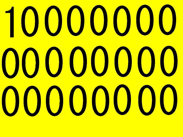 上は、1000垓(がい)をアラビア数字で表したものを、キューブペイントネットで描きました。 |