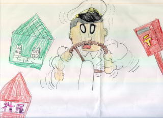 まっすぐに、ぐんぐん走ります。「そこのポストを左にまがって。」松井さんは、ハンドルをまわしました。