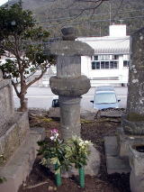 ![]() 石灯籠 貞享2(1685)年(芭蕉「野ざらし紀行」の 年)神社より、天然記念物「左巻きがや」へ至る道 を望む。 |