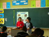 | 1年生は、「わくわく探 検隊」。大好きな長瀬 の春夏秋冬の自然を 紹介。 |