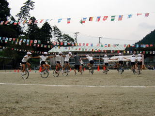 待ちに待った運動会も、いよいよ明後日に迫ってまいりました。準備も整い、あとはお天気になることを祈るばかりです。本年度から、以下のように大きく様変わりをしましたので、お知らせします。 まず、紅白対抗の点数競争はなくし、普段の学校生活の縦割りの生活班(みかん班・ぶどう班・メロゴールド班)や、委員会(視聴覚・飼育栽培・保健体育・図書)、分団(上長瀬・上出・神糀中)によるリレーや、団体競技種目を実施することにしました。したがって、従来の紅白対抗の応援合戦も、なくしました。代わって、高学年児童が中心になって全校児童が一致団結、協力し、創作した全校ダンスと、一輪車アトラクションを合体しました。(新しい学習指導要領実施に伴う、生きる力を育み、自ら考え、自ら学ぶ子どもを育てる教育活動の一環です。) |
