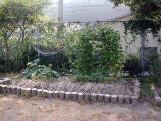 5・6年生の人達へ。8月7日のキャンプまでに、食べられそうに育った作物は、枯らしてはもったいないので、水やり当番の人で収穫して、家の人にプレゼントしてね。(理科担当より)