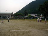 | 最後は、先生も一緒に・・・。 | 高学年の立ち幅跳び。 | この頃、小雨が・・・。 | 着地は、ナイス! |