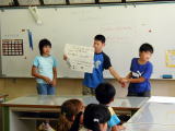 高学年が3グループに分かれ、 自分たちの行きたいところを選び、調べたことを、 全校のみんなに伝えます。 先生も含め、全員で投票し、職員会議に付託。