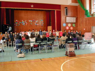 ピアノ・エレクトーン伴奏は4年生2人で。 23人の歌声に聞き入る保護者の皆さん方と、保
