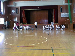 綱引きの並び方の練習を、はじめてやりました。 4委員会のどことどこが対戦するかを決めました。 明日、運動場で、実際の体型で綱を使って実施予定。