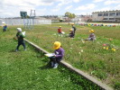 今日の生活は校庭に出て、春見つけをしました。